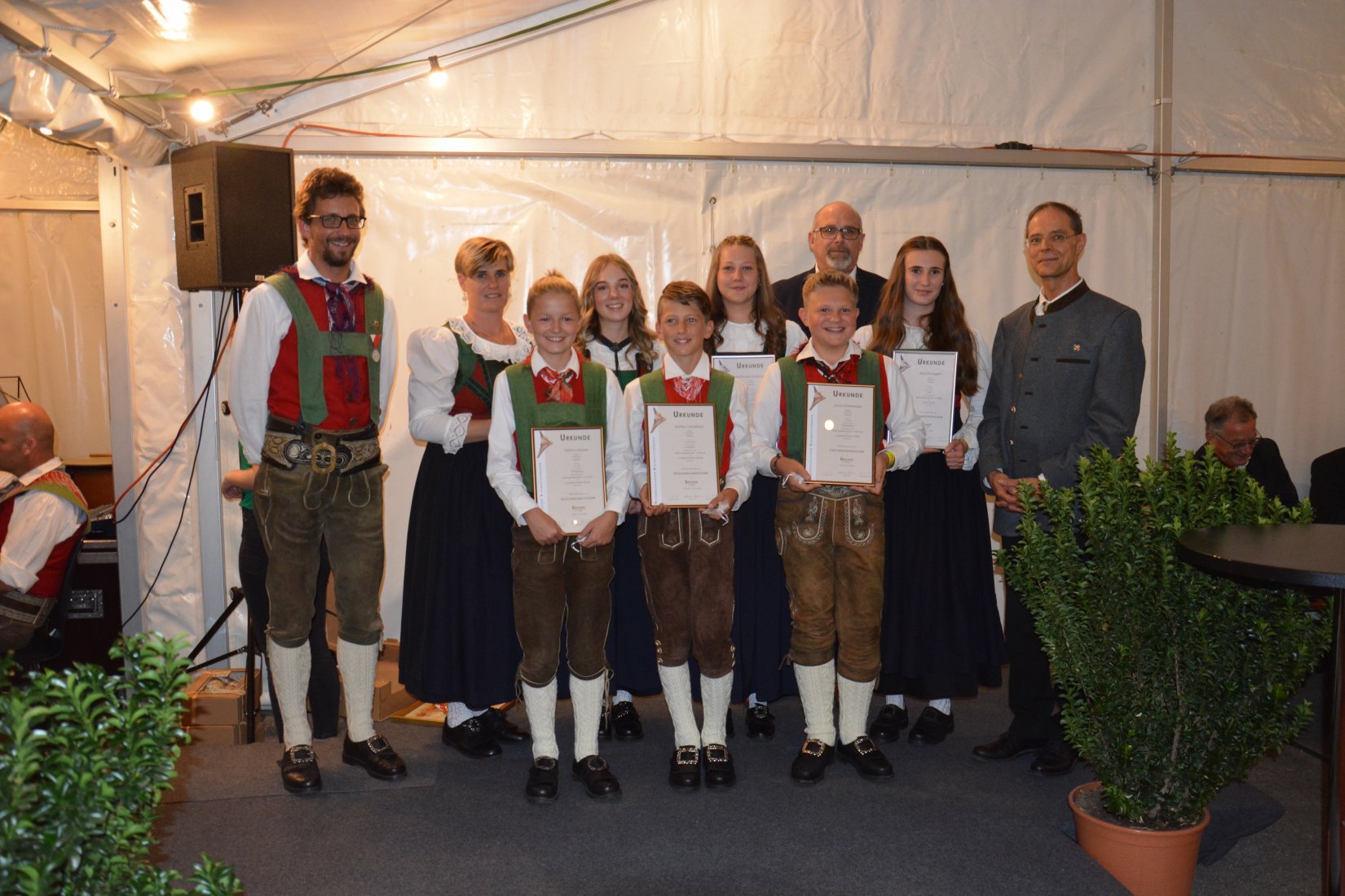 Matteo Landsfried (Trompete - Bronze mit ausgezeichnetem Erfolg), Jonas Unterweger (Schlagwerk - Bronze mit ausgezeichnetem Erfolg), Tobias Lukasser (Schlagwerk - Bronze mit ausgezeichnetem Erfolg), Heidi Duregger (Horn - Silber mit gutem Erfolg), Lea Stocker-Waldhuber (Klarinette - Silber mit ausgezeichnetem Erfolg) sowie Nina Unterweger (Saxophon - Silber mit ausgezeichnetem Erfolg).