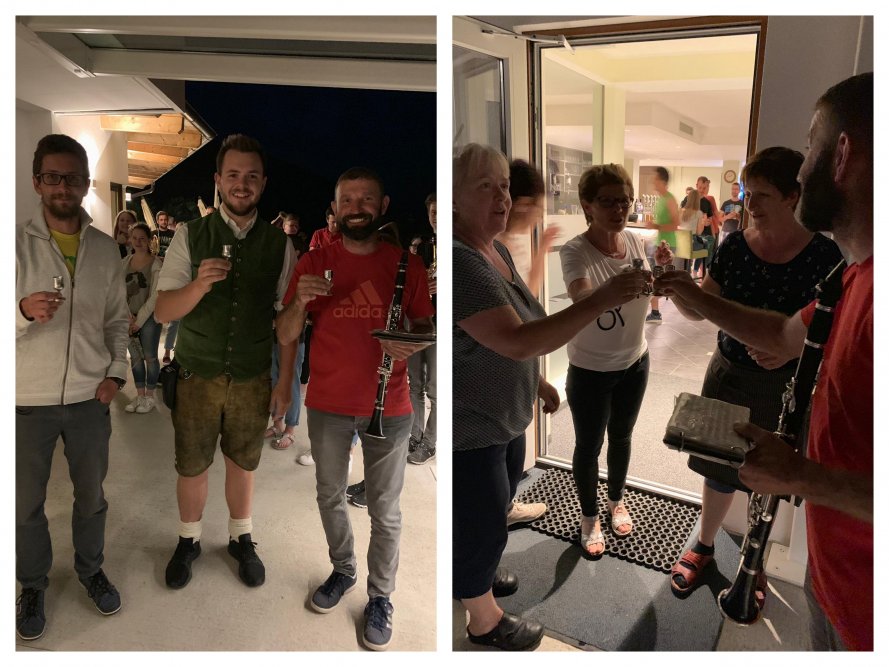 Unseren Baritonisten und heimgekehrten Juniorchef vom Gästehaus Walter konnten wir bei seiner Einweihung mit einem Ständchen überraschen. Wir freuen uns wieder, dich bei uns zu haben, damit du uns bei der Musik und auch nach der Probe und Ausrückungen immer ein guter Wirt sein wirst und euer Gasthaus weiterhin ein Treff für uns Musikanten sein wird. Wir wünschen euch, der Familie Annewandter viel Erfolg in eurem neu renovierten Gästehaus!