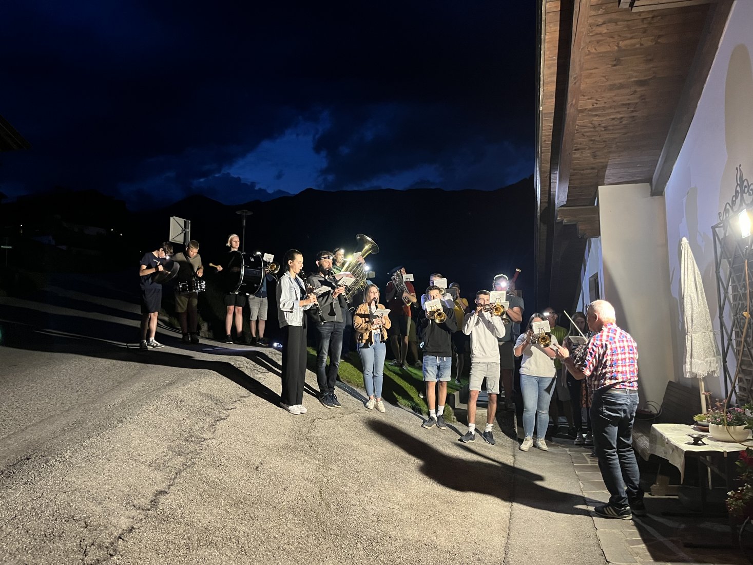 Mit rund 20 Musikanten spielten wir ein paar Märsche für den Jubilar und unsere Obfrau Astrid überreichte ihm ein kleines Präsent. Selbstverständlich wurde auch mit einem Schnaps auf das Geburtstagskind angestoßen.