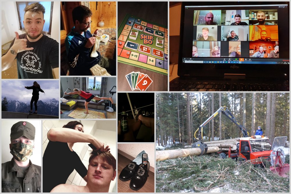Die Musikkapelle Tristach hat uns auf Facebook herausgefordert und uns 24h Zeit gegeben, um ihnen zu zeigen, wie wir die musikfreie Zeit verbringen. Schnell konnten wir von vielen Musikantinnen und Musikanten tolle Schnappschüsse einsammeln und in Form einer Collage auf unserer Pinnwand präsentieren. Ob beim Proben, beim Spielen, Sporteln, Gartln, Haare schneiden, Musikstutzen stricken oder einfach nur beim Faulenzen, alles war dabei.