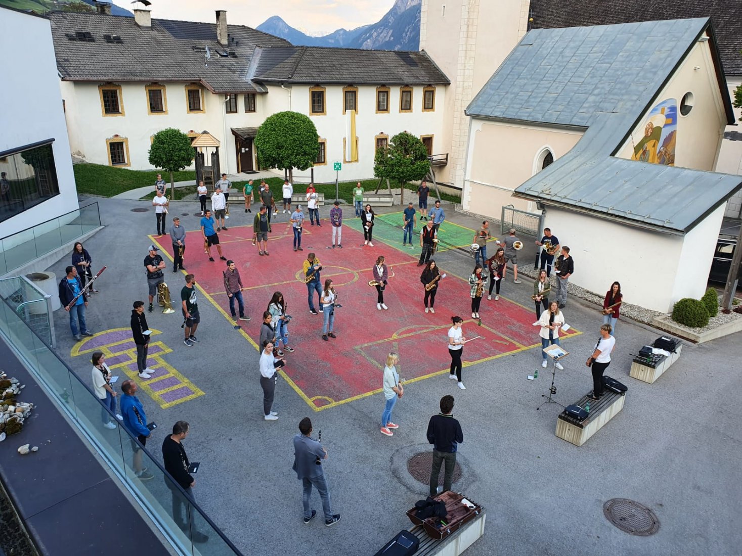 Nach langem Warten ist es endlich wieder soweit. Am vergangenen Freitag konnten wir die erste Gesamtprobe seit langem abhalten. Seit unserem letzten Auftritt sind bereits 9 Monate vergangen, weshalb diese Probe für uns Musikaten etwas ganz Besonderes war. Möglich machten das die neuesten Lockerungen seitens der Bundesregierung, sodass wir am Asslinger Dorfplatz proben konnten. Unter Einhaltung der derzeit geltenden Bestimmungen probten wir für den Herz-Jesu-Sonntag (13. Juni), an dem wir die Messe, welche im Freien am Asslinger Dorfplatz stattfinden wird, mit gestalten werden. Allen Musikanten ein herzliches Dankeschön für das Einhalten der Covid-Maßnahmen und wir freuen uns schon, endlich wieder in voller Stärke vor Publikum spielen zu dürfen!