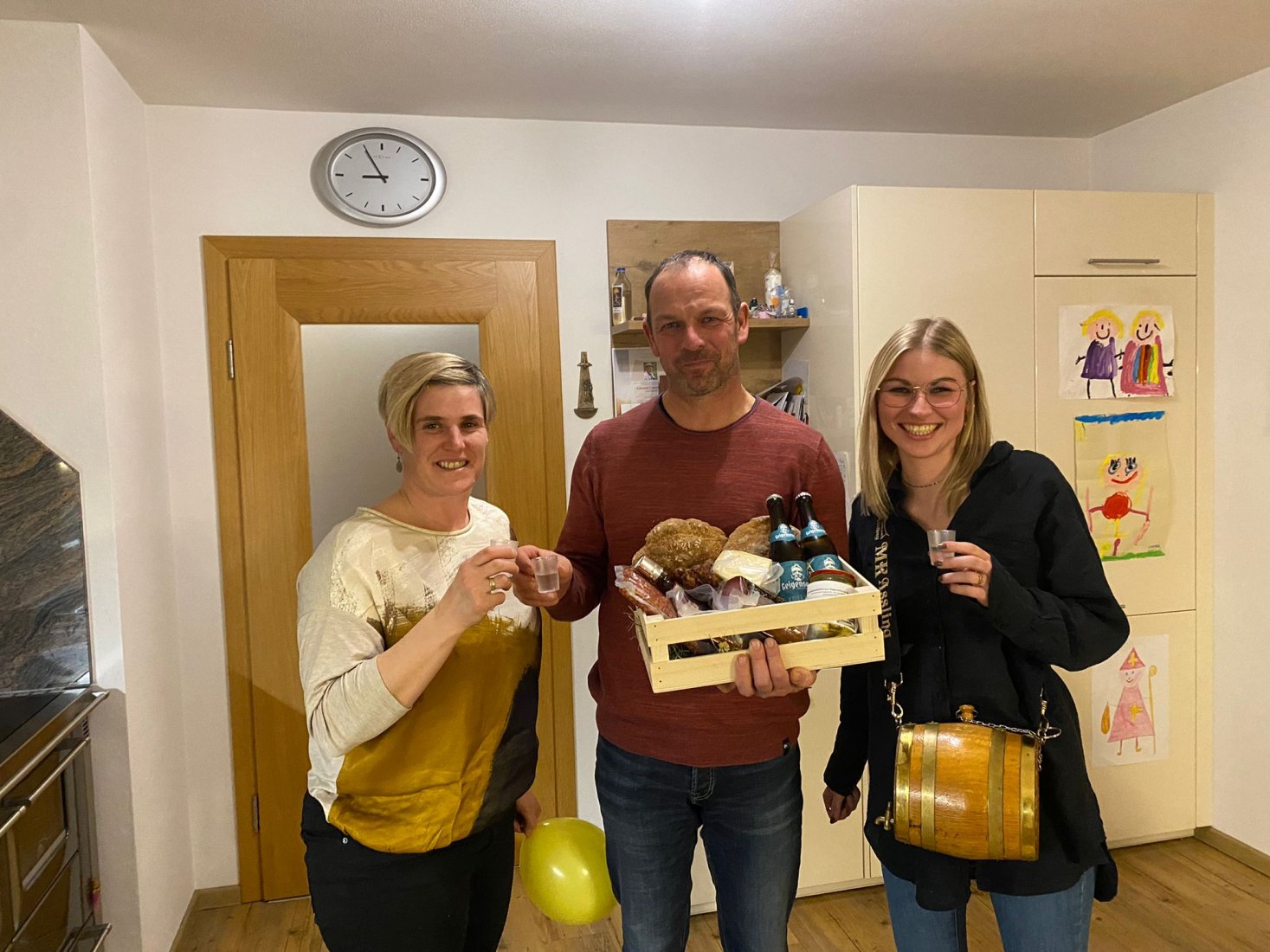 Unsere Obfrau Astrid überreichte dem Jubilar am vergangenen Samstag einen Geschenkkorb und einen musikalischen Gruß in Form eines Videos.